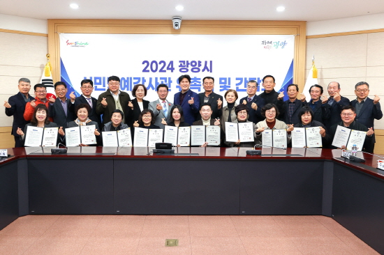신임 감사관 12명, 연임 감사관 12명 총 24명의 시민명예감사관이 위촉됐으며 정인화 광양시장이 직접 위촉장을 수여했다. 간담회에서는 시민명예감사관과 관계 공무원 등 30명이 참석한 가운데 시민명예감사관의 역할과 광양시 청렴활동 시책을 공유했다.