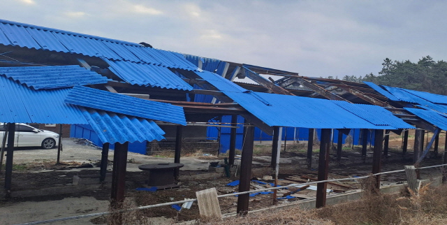 슬레이트 지붕 조각 날리고 흩어지며 더욱 흉물