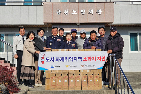 이에 시는 도서지역 화재취약지역에 대한 예방책 일환으로 여수소방서, 여수시 의용소방대 연합회와 ‘소화기 지원사업’을 마련했다.