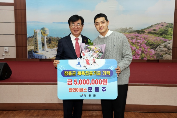 기금 전달식에는 문동주 한화이글스 투수, 김민재 씨름 천하장사, 문현우 장사, 김성한 장흥군 스포츠홍보자문관이 직접 참석했다.