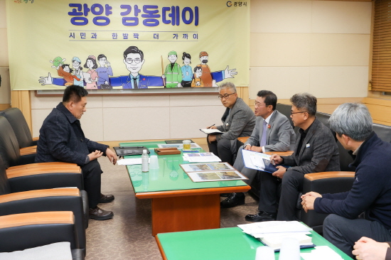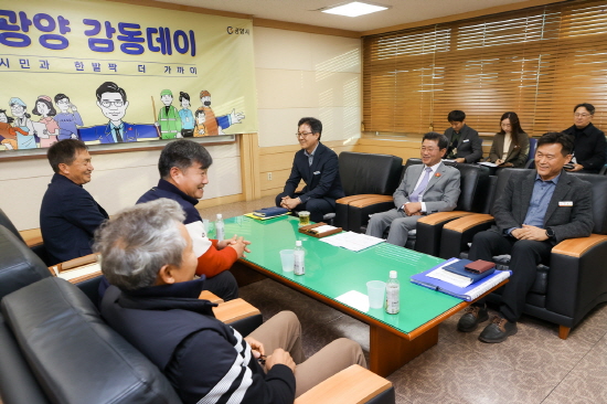 정인화 광양시장은 ▲다압취수장 관련 죽천마을 규제 해제 건의 ▲토석채취장 허가 관련 피해 대책 마련 ▲주택 옆 옹벽·주차장 조성으로 인한 피해 호소 ▲관내 유기질비료업체의 사업·수출 지원 및 관급자재 구매 요청 등 건의 사항에 대해 의견을 나누고 시민, 관계 부서장 등과 함께 해결책을 고민했다.