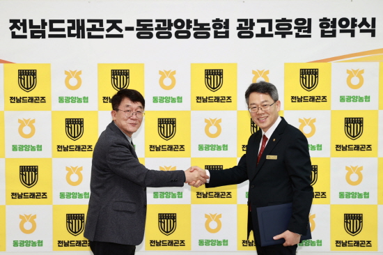 (전남=NSP통신) 김성철 기자 = 전남드래곤즈가 동광양농협(조합장 이돈성)과 광고후원 협약을 체결했다. 전남은 지난 6일 동광양농협 하나로마트 광영점 3층에 위치한 전남드래곤즈 사무실에서 광고 후원 협약식을 개최했다.