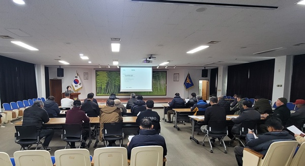 (전남=NSP통신) 김용재 기자 = 담양군이 담양경찰서와 함께 지난 8일 유해야생동물 포획기동단 29명을 대상으로 담양경찰서 4층 회의실에서 포획 활동 시 준수사항과 총기사고 예방 안전교육을 진행했다.