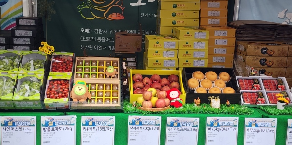 주요상품으로는 전남을 대표하는 상큼애·오매향 브랜드로 판매중인 배, 사과, 딸기, 샤인머스켓, 바나나, 레드향, 표고버섯, 맛과 품질이 특별한 장흥축협 육포 등으로 구성돼 있으며 최대 30% 할인된 가격으로 판매할 예정이다.