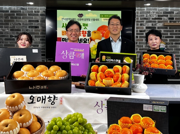 농협전남본부 온라인지역센터에서 1시간 동안 진행된 방송에서 전남광역농산물브랜드인‘상큼애(愛)’로 출하된 배(나주), 샤인머스켓(강진), 레드향(고흥) 선물세트를 시중가보다 최대 40% 저렴한 가격으로 판매했다.