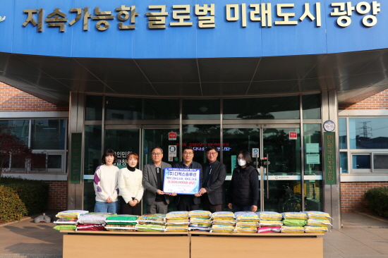 (전남=NSP통신) 김성철 기자 = 디엑스솔루션(대표 임용재)는 이웃사랑을 실천하기 위해 태인동사무소에서 광양시사랑나눔복지재단(이사장 김재경)에 쌀 20KG 6포, 10KG 24포(100만 원 상당)를 기탁했다.