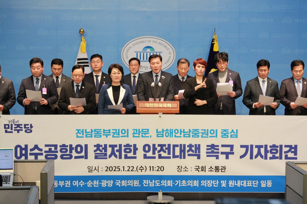 전남동부권 정치인들은 “이번 항공참사로 여수공항에 대한 근본적인 안전 조치가 취해지지 않으면 또 다른 비극이 발생할 수 있다는 우려가 확산되고 있다”며 “이는 가뜩이나 어려운 지역경제 침체에 더욱 악영향을 끼치고 있다”고 우려했다.