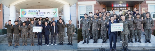 윤병태 시장은 “추운 날씨 속에서도 묵묵히 국방의 의무를 다하는 군 장병들이 따뜻하고 즐거운 명절을 보내기를 바란다”며 “재난·재해 상황에서 대민 지원과 복구 활동에 헌신한 군 장병들의 노고에 깊이 감사드린다”고 전했다.