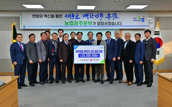 (광주=NSP통신) 김용재 기자 = 농협광주본부(본부장 이현호)가 지난 21일 농협광주본부 3층 회의실에서 제주항공 여객기 사고 피해자와 유가족을 돕기 위해 성금 2320만원을 모아 사랑의 열매(사회복지공동모금회)에 기탁했다.