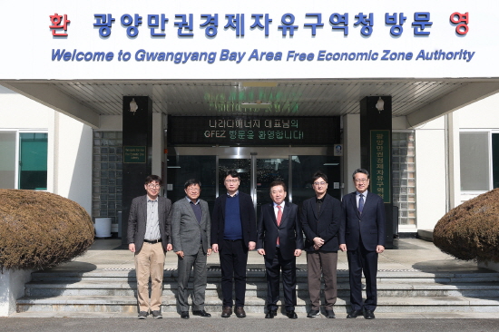 나라다에너지 한국법인 임원들 광양만권경제자유구역청 방문 기념 찰영 (사진 = 광양만권경제자유구역청)
