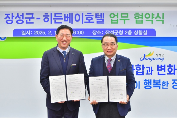 (전남=NSP통신) 김용재 기자 = 장성군이 지난 12일 히든베이호텔과 업무협약을 체결했다.