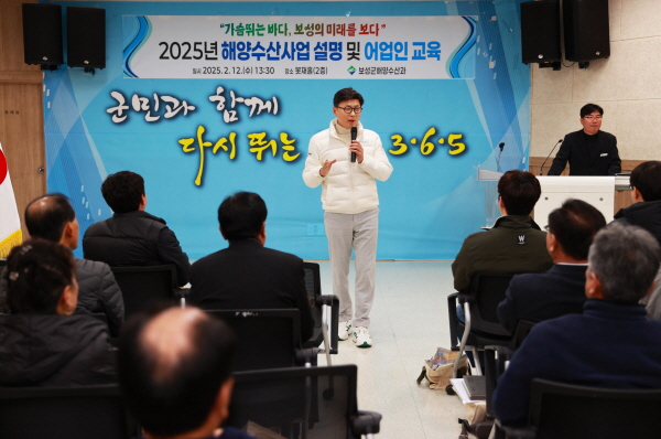 (전남=NSP통신) 남정민 기자 = 전남 보성군은 최근 보성읍 봇재홀에서 200여 명이 참석한 가운데 ‘2025년 해양수산사업 설명회 및 어업인 교육’을 개최했다고 13일 밝혔다.