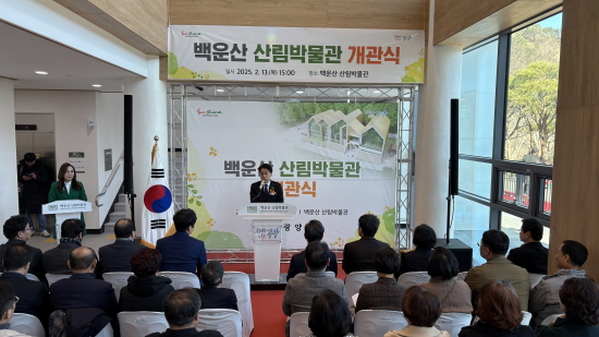김태균 의장은 축사를 통해 “우리나라 4440개 산중에 광양 백운산은 100대 명산 중 하나로 손꼽히는 명산 중 명산이다”고 소개하며 “이번 산림박물관 개관으로 백운산은 전남을 대표하는 힐링산림 명산이 될 것이다”고 기대했다.