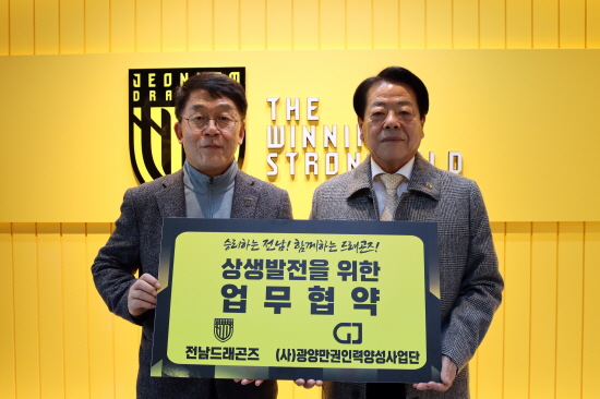 (전남=NSP통신) 김성철 기자 = 전남드래곤즈(사장 김규홍)가 지역 청년들이 양질의 안정적인 일자리에 취업할 수 있도록 광양만권인력양성사업단(대표 서성기)과 업무협약을 체결했다.
