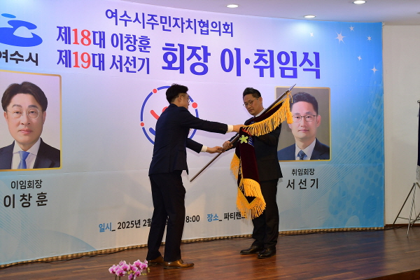 이날 행사에서 지난 1년간 주민자치협의회를 이끈 18대 이창훈 회장이 협의회 깃발을 19대 서선기 회장에게 건네며 이임했다.