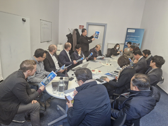 이튿날 방문단은 독일 로이나에 위치한 프라운호퍼 풍력에너지시스템 IWES 연구소(수소 연구소)를 찾아, 야외 테스트 필드에 설치된 컨테이너형 최대 5MW급 수전해 장치 및 수소 분석·정제 시스템을 견학하며 최신 기술 동향을 파악했다