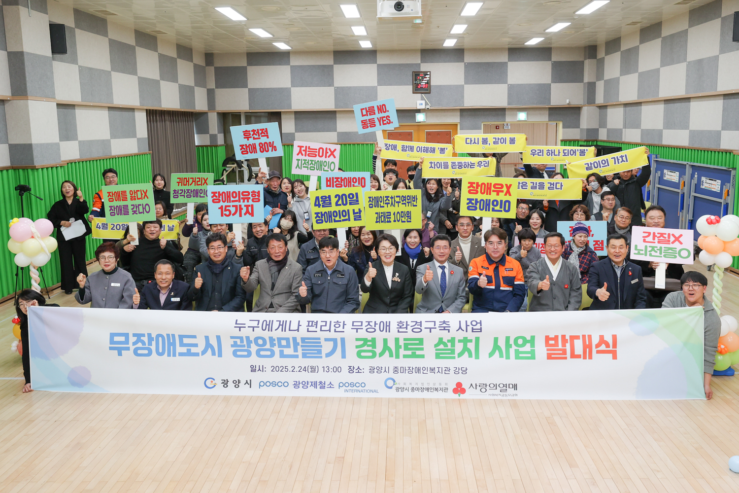 (전남=NSP통신) 김성철 기자 = 광양시는 지난 24일 중마장애인복지관에서 ‘소규모 점포 경사로 설치사업’ 발대식을 열고 장애물 없는 도시 조성을 위한 힘찬 걸음을 내디뎠다고 밝혔다.