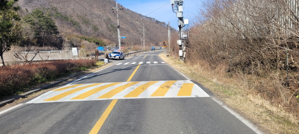 점검 결과 도로가 굽어 있고 차량의 과속이 잦아 사고 위험이 높은 것으로 확인됐다. 이에 경찰은 유관 기관과 협력해 마을 입구에 횡단보도 1개소와 양방향 과속방지턱 2개소를 설치하는 등 교통사고 예방 조치를 완료했다.