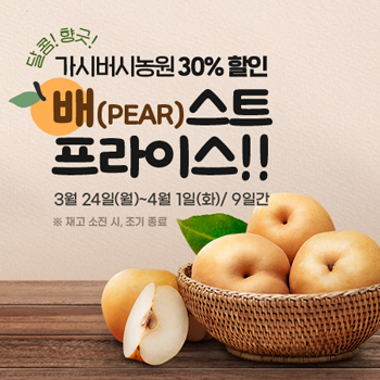 (전남=NSP통신) 김용재 기자 = 곡성군(군수 조상래)이 군 온라인 쇼핑몰인‘곡성몰’에서 입점업체 단독 할인 기획‘배(Pear)스트 프라이스 30%’기획전을 24일부터 오는 4월 1일까지 진행한다.