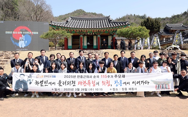 (전남=NSP통신) 김용재 기자 = 장흥군이 26일 장동면 해동사에서 ‘안중근 의사 순국 115주기 추모제’를 봉행했다.