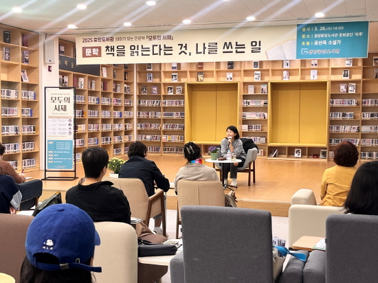 ‘모두의 서재’는 분기별 다양한 주제의 작가를 초청해 책과 삶에 대한 진솔한 이야기는 나누는 중앙도서관 대표 인문학 강좌로 이번 강연은 문학을 테마로 ‘수수밭으로 오세요’, ‘은주의 영화’ 등 다수의 책을 집필한 공선옥 작가를 초청해 진행했다.