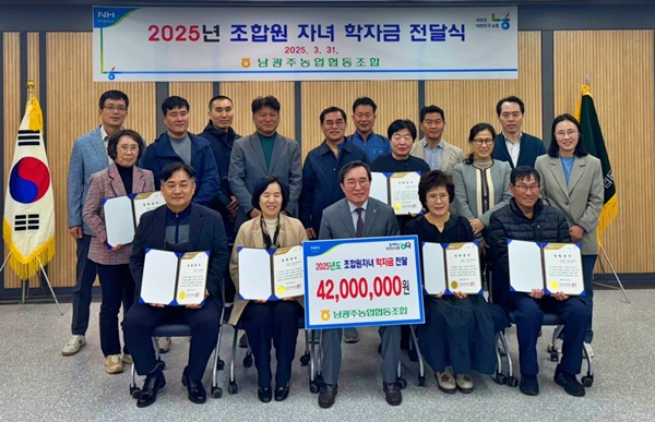 (광주=NSP통신) 김용재 기자 = 농협광주본부(본부장 이현호)는 남광주농협(조합장 이영종)이 31일 남광주농협 회의실에서 조합원 자녀 교육비 부담 경감과 지역사회 인재양성을 위해 조합원의 대학생 자녀 42명에게 총 4200만원을 전달했다고 밝혔다.