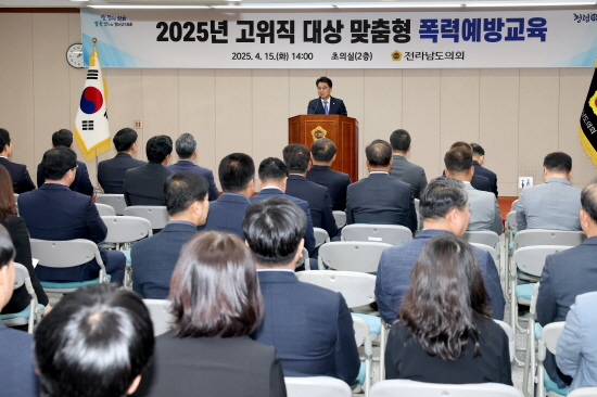 (전남=NSP통신) 김성철 기자 = 전라남도의회(의장 김태균)는 지난 15일 전체 의원과 사무처 5급 이상 간부 공직자를 대상으로 4대 폭력 예방 집합교육을 실시했다고 밝혔다.