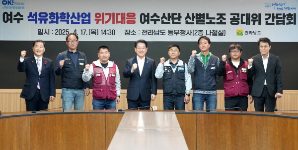 (전남=NSP통신) 남정민 기자 = 김영록 전라남도지사가 지난 17일 전남도 동부청사에서 여수 석유화학산업 위기 극복을 위해 여수국가산단 산별노조 공동대책위원회(이하 공동대책위) 대표단과 간담회를 갖고 협력 방안을 논의했다.