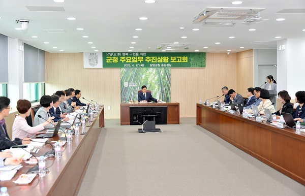 (전남=NSP통신) 김용재 기자 = 담양군(군수 정철원)은 지난 17일 송강정실에서 정철원 군수 취임 이후 처음으로 ‘군정 주요업무 추진상황 보고회’를 갖고 군정 운영 방향과 중점 추진 과제를 공유했다.