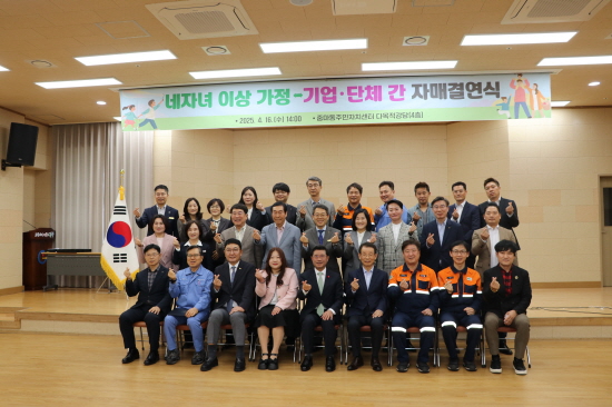 이번 결연식은 최근 저출산과 고령화로 인한 인구감소가 사회적 문제로 대두되는 만큼 다자녀 가정의 양육비용 부담을 완화하고 지역 공동 육아 분위기를 조성하기 위해 추진됐다.