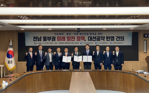 특히 여수국가산단을 비롯한 광양만권 지역을 산업위기 대응 특별지역으로 지정하고 국가기간산업 위기극복 특별법과 여천선 재활용을 통한 공공 SOC 구축 지원 등을 전남 동부권 미래발전 정책과제에 담아 촉구했다.