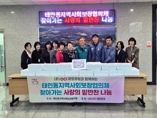 배록순 태인동장은 “어려운 이웃을 위해 후원금을 기탁해주신 OCI 광양공장 임직원 여러분께 감사드린다”며 “앞으로도 민·관이 협력해 소외된 이웃에게 희망을 전할 수 있도록 최선을 다하겠다”고 밝혔다.