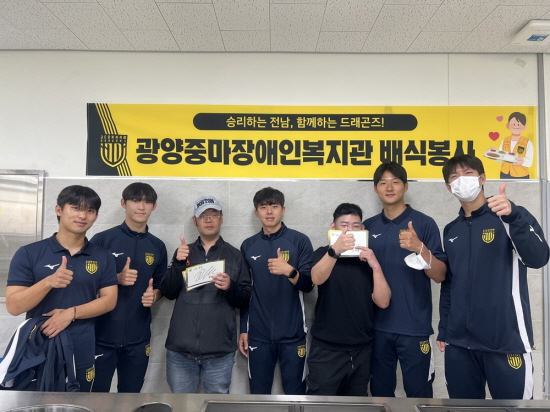 (전남=NSP통신) 김성철 기자 = 전남드래곤즈(사장 김규홍)는 지난 29일 광양시 관내 사회복지시설 및 학교를 방문해 배식봉사와 축구클리닉 등 사회공헌활동을 실시했다.