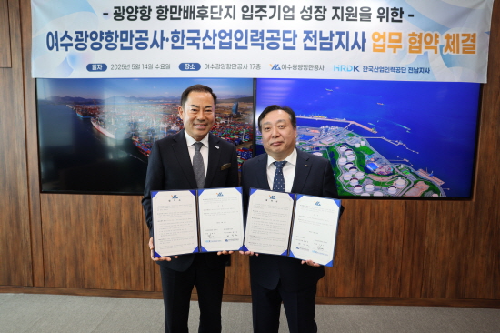 (전남=NSP통신) 김성철 기자 = 여수광양항만공사(YGPA)는 한국산업인력공단 전남지사(HRDK)와 광양항 항만배후단지 입주기업의 전문 인력 확보와 지속 가능한 성장 지원을 위해 업무협약을 체결했다고 밝혔다.