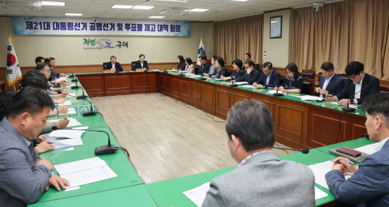 (전남=NSP통신) 김성철 기자 = 구례군이 오는 6월 3일 실시되는 제21대 대통령 선거를 앞두고 선거의 공정성과 투명성을 확보하고 군민들의 투표 참여를 적극 유도하기 위해 지난 14일 공명선거 및 투표율 제고를 위한 대책회의를 열었다.
