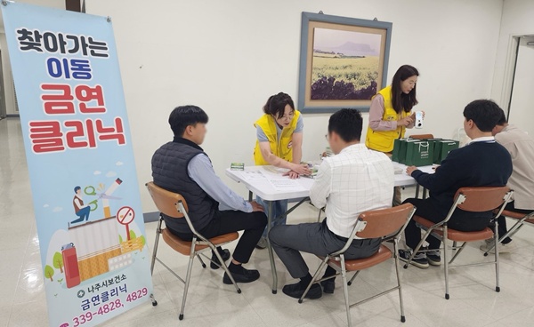 (전남=NSP통신) 김용재 기자 = 나주시보건소가 금연 의지는 있으나 여러 가지 사정으로 보건소 방문이 어려운 직장인들을 위해 ‘찾아가는 금연클리닉’을 운영한다.
