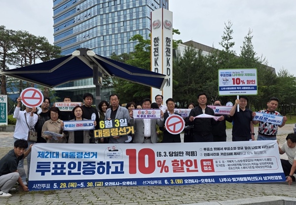 이벤트는 사전투표일(5월29~30일)과 본투표일(6월 3일)에 투표소 밖에서 투표소와 얼굴 등이 나오게 인증사진을 촬영해 매장 카운터에 제시하면 10% 할인해주는 방식으로 이뤄지고 할인은 본투표일인 6월 3일 하루 동안만 적용된다.