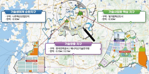 시는 한국전력공사와 에너지신기술연구소를 기술 핵심 기관, 나주 혁신산단 및 혁신도시 산학연 클러스터를 연구개발 배후 공간으로 육성해왔다.