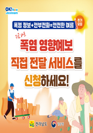 강영구 전남도 도민안전실장은 “기후위기로 폭염이 일상이 된 지금, 맞춤형 대책과 촘촘한 현장관리로 도민의 생명과 재산을 지키겠다”며 “올여름도 안전한 전남을 위해 총력을 다하겠다”고 밝혔다.