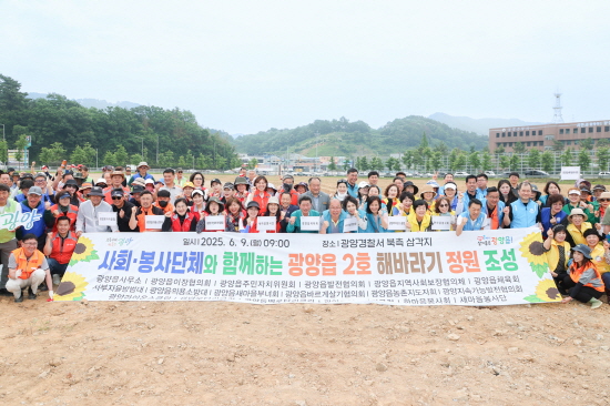 권회상 광양읍장은 “사회·봉사단체의 헌신적인 참여로 조성된 해바라기 정원이 8월경 만개해 광양읍을 찾는 시민들에게 사랑과 희망, 행운, 풍요로움의 메시지를 전할 것으로 기대된다”고 말했다.