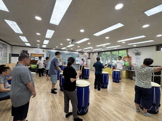 참여자들은 난타 활동을 통해 신체리듬을 익히고 음악에 맞춰 동작을 모방하는 훈련에 참여하며 집단 합주로 자신감과 집중력을 높이고 있다.