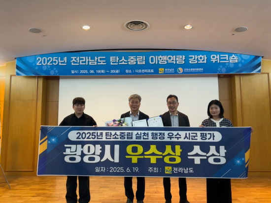 (전남=NSP통신) 김성철 기자 = 광양시는 지난 19일 여수시 디오션 호텔 앤 리조트에서 열린 2025년 전라남도 탄소중립 이행역량 강화 워크숍에서 탄소중립 행정 ‘우수상’을 수상했다고 밝혔다.
