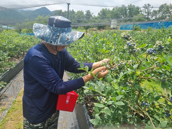 (전남=NSP통신) 김용재 기자 = 강진군에서 재배되는 노지 블루베리가 본격 수확철에 접어들었다.20일 농촌진흥청 자료에 따르면 세계 10대 슈퍼푸드 가운데 하나인 블루베리는 비타민 A 함량이 사과의 5배, 안토시아닌 함량은 딸기의 4배 이상 높아 노화 억제, 항산화효과, 혈관질환억제, 시력보호 효과 등이 뛰어난 대표적인 건강 과일로 손꼽힌다.