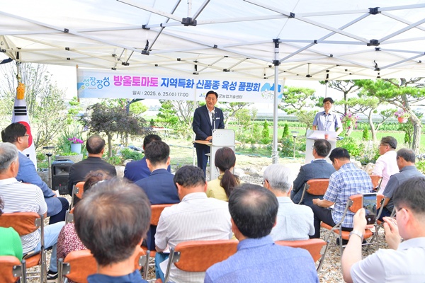 (전남=NSP통신) 김용재 기자 = 장성군이 지난 25일 남면 분향리에서 신품종 방울토마토 ‘티에스(TS)샛별’ 품평회를 열었다.