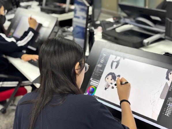 순천형 교육발전특구 특성화고-대학이음 교육과정 수강생이 웹툰 애니메이션 실습교육을 받고 있다 (사진 = 순천시)
