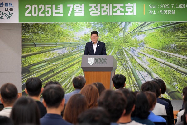 (전남=NSP통신) 김용재 기자 = 담양군(군수 정철원)은 1일 군청 면앙정실에서 공직자 160여 명이 참석한 가운데 7월 정례 조회를 개최했다.