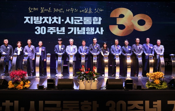 (전남=NSP통신) 김용재 기자 = 나주시가 지방자치제도와 시군 통합 시행 30주년을 맞아 기념행사를 갖고 새로운 미래 비전 실현을 위한 도약의 발판을 마련했다.