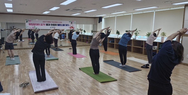 요가교실에 참여한 한 수강생은 “오랜만에 요가 수업에 참여하니 굳어 있던 몸이 풀리는 느낌이고, 스트레스도 덜어지는 것 같다”고 말했다.