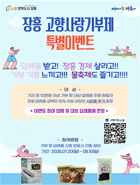 (전남=NSP통신) 김용재 기자 = 장흥군은 제18회 정남진 장흥 물축제 개최를 기념해 고향사랑기부제 특별 이벤트를 실시한다고 17일 밝혔다.