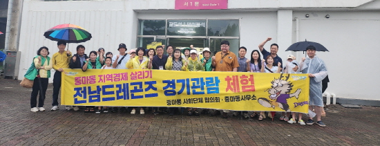 (전남=NSP통신) 김성철 기자 = 광양시 중마동은 지난 19일 중마동 통장협의회를 비롯한 9개 사회단체 회원 100여 명과 함께 전남드래곤즈 홈경기 관람 체험 활동을 실시했다고 21일 밝혔다.